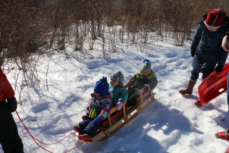Thank you for everyone who was able to make it to our Snow Stravaganza at the Wachtmeister field station! We had a fun-filled time building cardboard sleds, skiing, drinking hot cocoa and enjoying the beautiful day outside! Pictured is one of our digital media interns teaching kids how to Nordic ski, kids enjoying a sleigh ride during a nature walk and everyone enjoying the beautiful fire outside the field station.