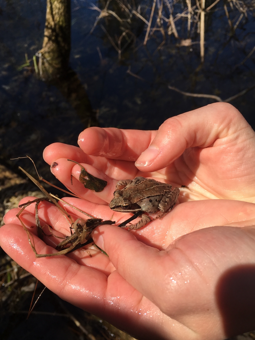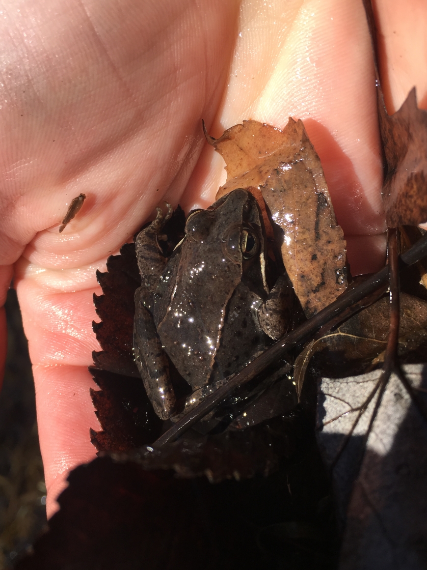 I went on a walk down by the Little River and heard lots of wood frogs and spring peepers. I saw many of the wood frogs (Rana sylvatica) in a marshy area, and I tried to follow the sound of a few peepers (Pseudacris crucifer) but sadly never set eyes on any.