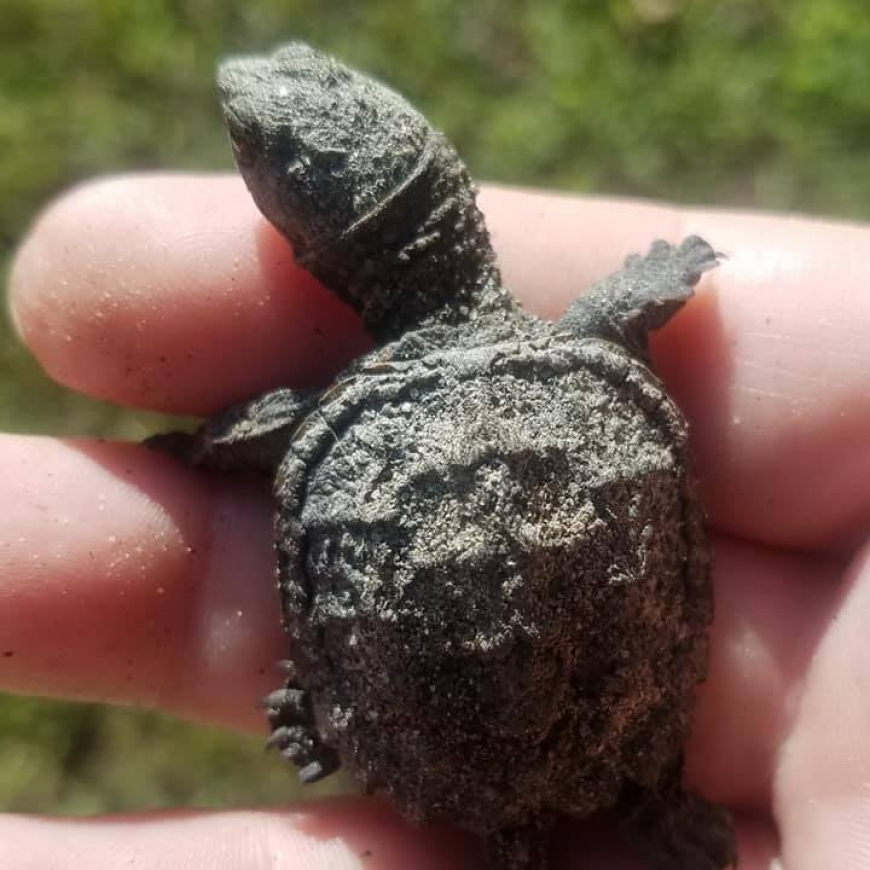 Single baby snapping turtle, just emerged
