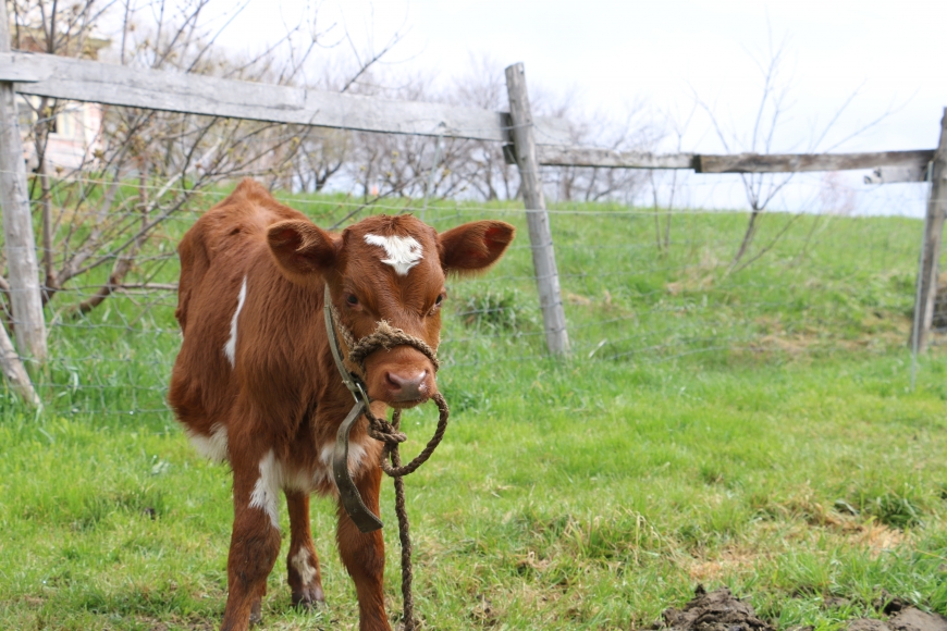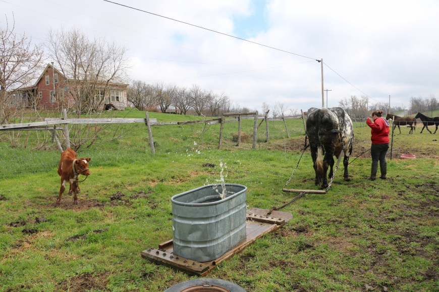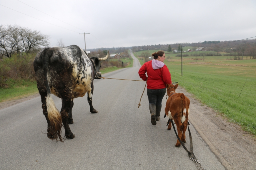 AKP: Well, my parents had a dairy farm. They farmed over there [she points across the road] and my grandfather trained Morgan horses in Vermont. And Vermont is very much more local food. I graduated from high school in 2003, so I mean I was really in high school during a lot of the local food movement. It was really kinda like the upstart of organic farming in that area and people having their gardens and produce and I don’t know, I just have always been involved with farming. But I really like the animal-human relationship, and I mean I like cows, I just genuinely like cows. And I showed dairy, but the dairy cows, you train them until they’re milking, and then that’s it. You can’t do any more…