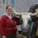 Anna Knapp-Peck: These are just show cattle, they’re all just pretty, they don’t do a lot. They look good [she points to picture of her first team, and they do look good], they walk around. All they essentially do is just stand around and walk, and then you have the pulling cattle, [points to picture of her with another team] and all they do is pull weight. There’s no useful oxen. So that’s what I’ve tried to recapture. [Purple, her daughter’s ox, moos from the barn] Hi Purple! Purple is mad…They just pull these weights, so they get all beefed up and that’s what they do, they go and pull. But none of them do like work, real work.