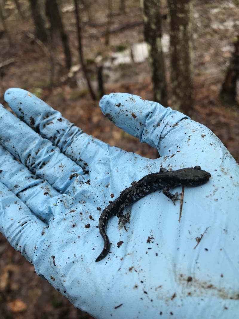 I found this salamander under a soft, rotting log, on a cloudy afternoon following a morning rain. The air temperature was around 50 degrees Fahrenheit but parts of the ground were still slightly frozen.