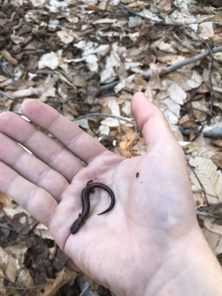 Warm sunny day in Glenmean State Forest, Pierrepont, NY. This salamander was found underneath a decomposing log.