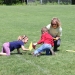Student pollinators race to earn nectar as a reward for pollinating flowers during the relay activity. Nature Up North Summer Naturalist Interns Maya Williams and Molly McMasters act as flowers, distributing nectar and pollen to each student.