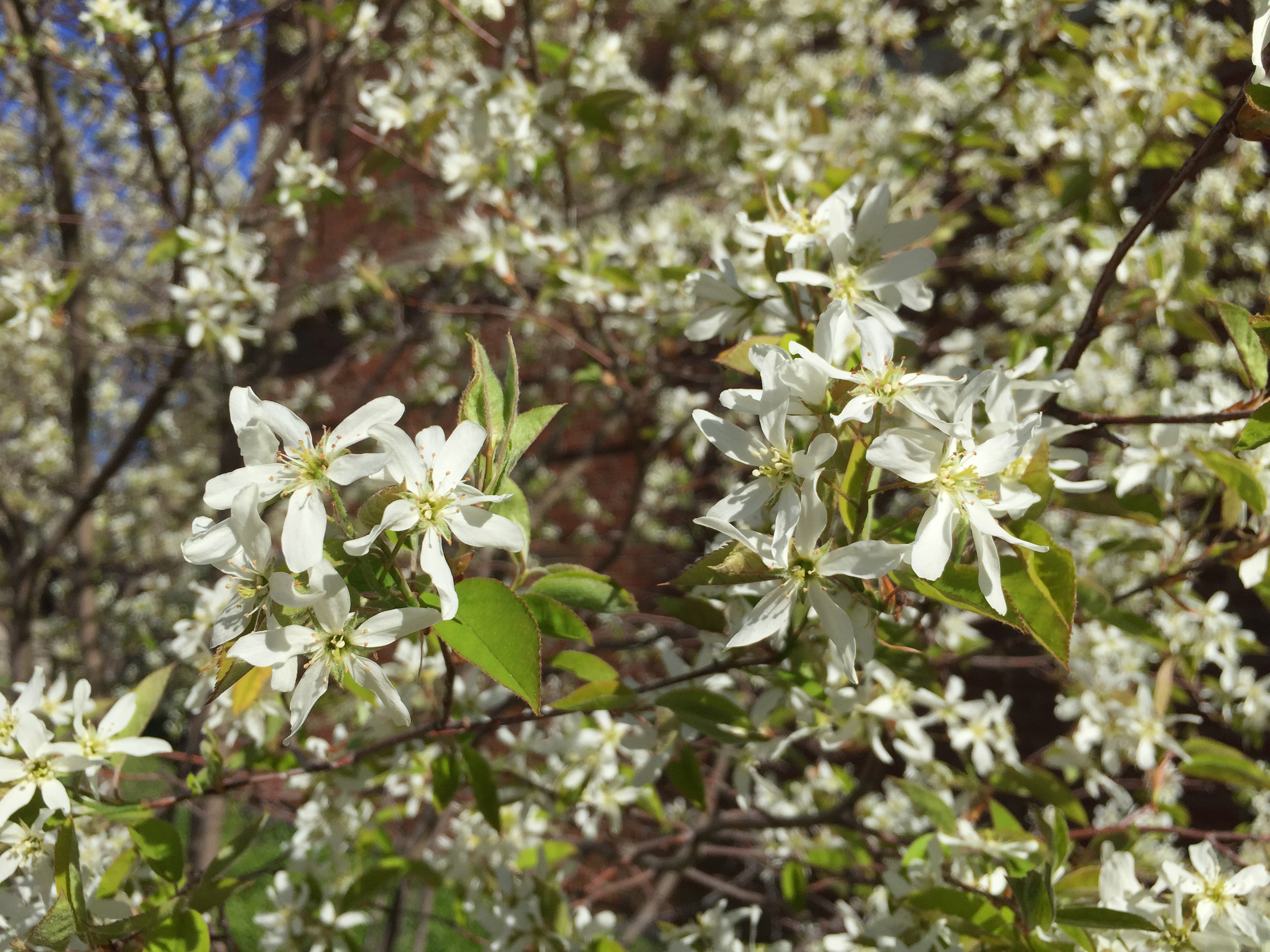 Amelanchier canadensis, a small shrubby tree native to our region, goes by many names: serviceberry, shadberry, shadbush, and juneberry. But my personal favorite is saskatoon berry. What a wonderful name for a fruit. It perfectly captures the pizzazz of these tiny reddish purple spheres, which are most commonly known as juneberries. This designation highlights its harvesting season, since the fruits develop and ripen in the month of June.