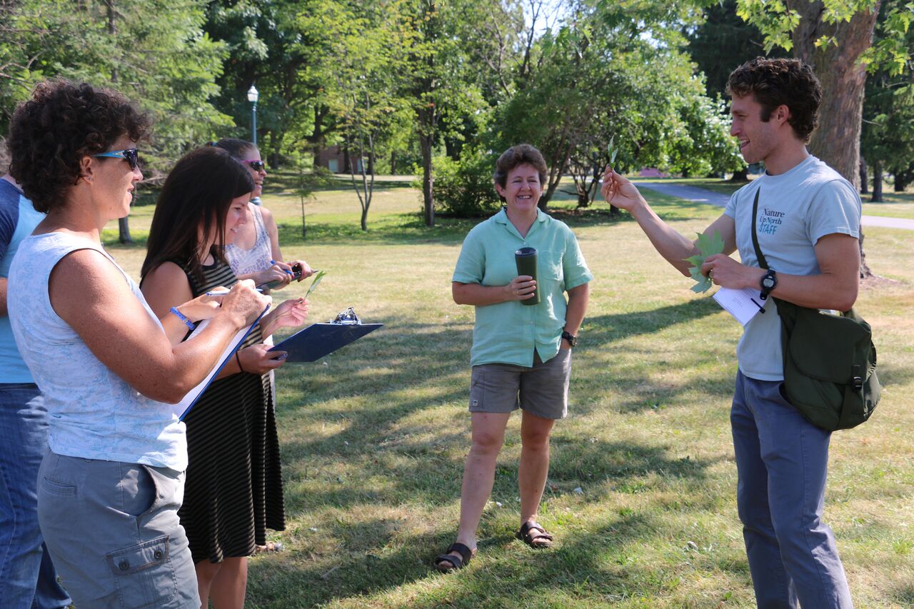 Let the adventure begin! Once again the NUN crew delivered on their promise to provide relevant and engaging environmental education activities to our area teachers. This year's group of teachers included some veteran's of the NUN program and a couple of newcomers. Participants were engaged throughout the two day workshop in activities such as an Encounter walk at Heritage park, MOWing the Grasse River, Meeting Trees and Monitoring Maples.