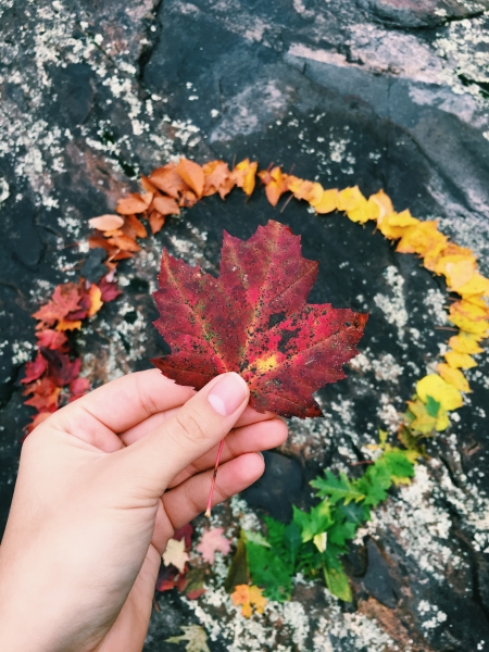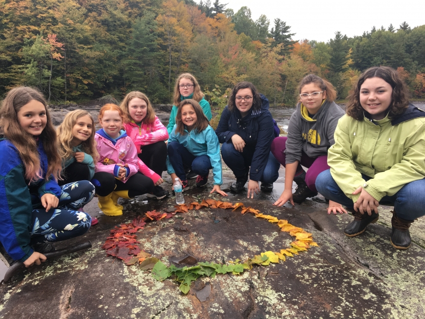 A great afternoon with Girl Scouts from Canton - De Kalb on a fall walk at Stone Valley. We explored how and why trees drop their leaves, and the group created this stunning color wheel with leaves collected on the trail.