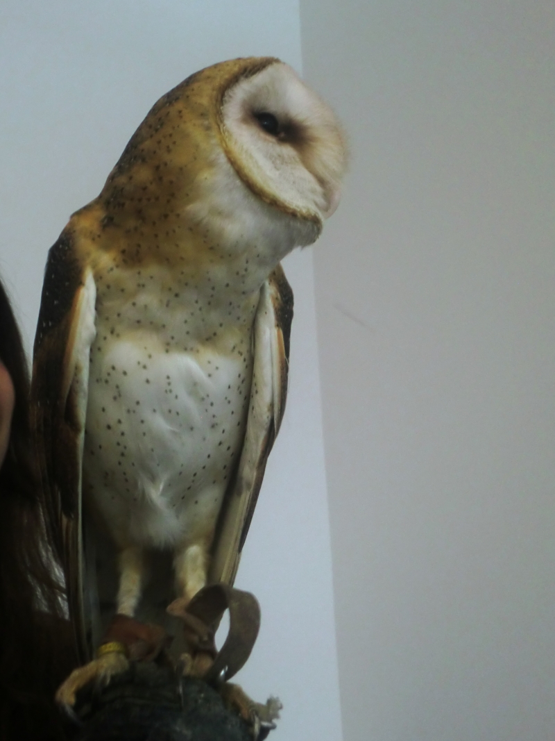 I was really excited when I was told by my professor that we were going to have a bird expert come in to give us a lecture with live birds. These kinds of birds are randomly dispersed throughout the world, but they can be found in every continent except for Antartica. They move thier head alot because they eye sockets don't move. They have soft feathers to absorb sound and their facial disk acts like an outer ear. The owl has to hole on the sides of her face to help her triangulate sounds. One interesting thing about them is that they are becoming endangered due to loss of habitat and monoculture.