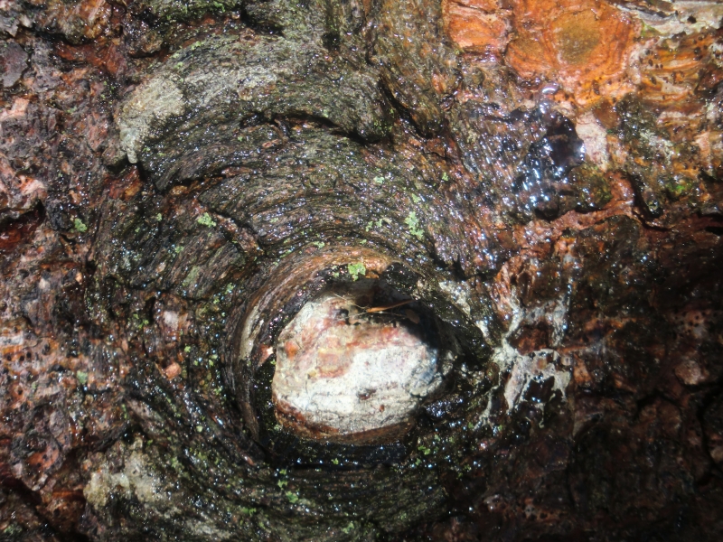 The is the second time I'm posting pictures of the red pine tree I came across on campus today. It was bid and it had sap and these round scars around them. Maybe I'm exaggerating here a bit, but those scars were a little hypnotizing. It looked like the tree had incurred some type of injury in the past and it has finish healing itself. It reminds me that when something gets broken or removed, it is not the end, nature has created mechanisms to heal and regenerate parts of the tree. What I found interesting is that it is still healing because the sap in still in the middle, which means it is covering the injury.