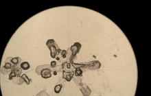 Temperature formed was at -15 degrees, right at the water saturation line with 89 % average humidity. There were at least two different nuclei present with changes in temperature and increased humidity occurring between the branch growth.