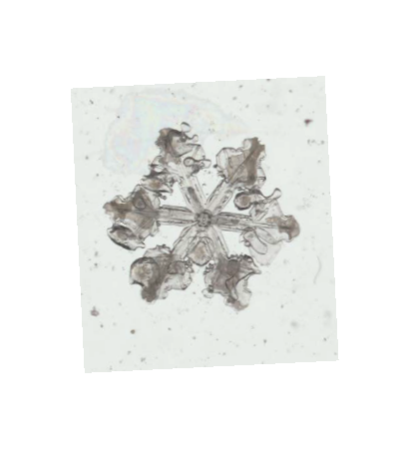 This snowflake (2018.01.05a) was collected on Jan. 05, 2018 at 5:45pm. Using Magano and Lee (1966), this snowflake is classified as a Stellar Crystal with Plates at Ends (P2n). The growth of this snowcrystal (and its resultant morphology) was controlled by weather conditions during its decent in the atmosphere. The following atmospheric conditions are recorded by this snowcrystal: a) the morphology which exhibits a stellar crystal form with plated ends, b) thermal limits of this snowflake which show that it was formed between -11 and -15oC, and c) temperature/humidity conditions which show that the flake formed at the water saturation point at approximately -13oC. Basically, this snowcrystal records the chaotic series of events from deposition of water vapor on a nucleus (e.g., dust particle) to collection. As a result of these specific conditions, this flake formed quickly at approximately the water saturation point. This resulted in the distinct morphology referred to as a “stellar crystal with plates at ends”.