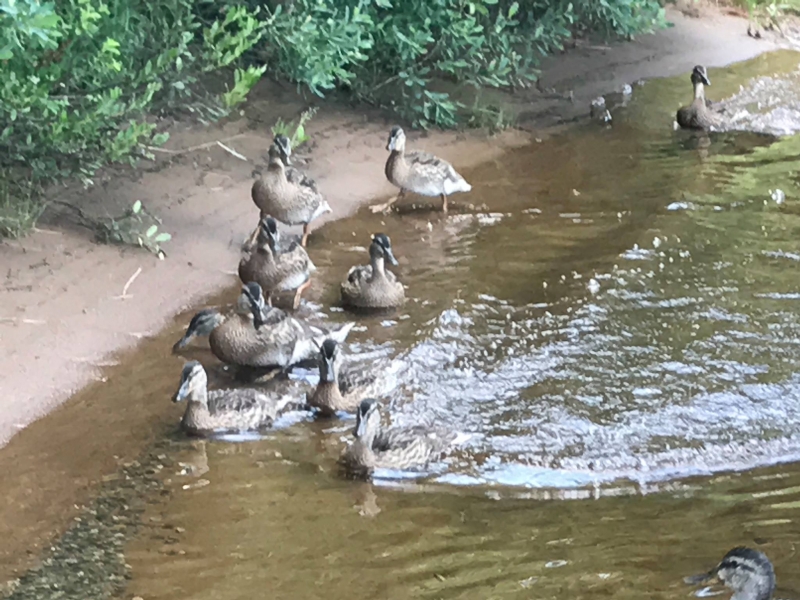 A stop at Blake Reservoir to walk and wade, when we saw a family of ducks - 10 babies and an adult. The curious ducklings got closer and closer to me until they were ultimately less than 4 feet away. Mama kept scolding them and scooting them back until she finally had enough and took them away.