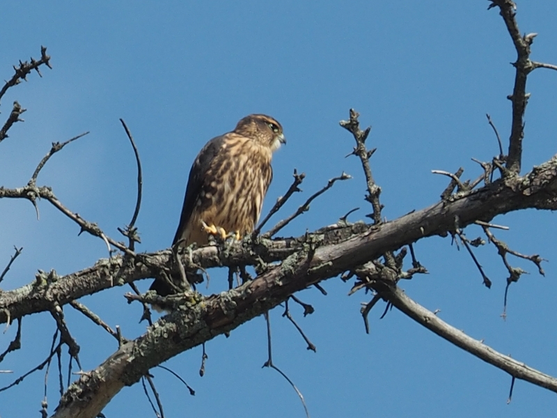 For the past four years Merlins have nested in the Town of Waddington. After fledging they spend a couple of weeks flying around the main street, announced by their piercing cries, before dispersing. This year two pairs may have nested as at one point there were five in view, rather than the usual one parent with two juveniles.