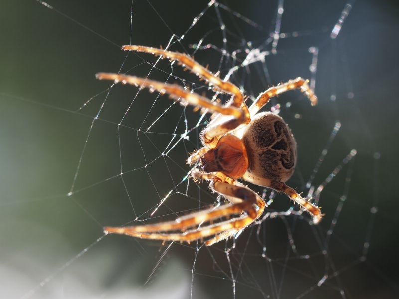 Spiders in your windows are messy, but backlit by a late afternoon sun they can be beautiful.