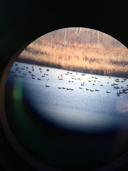 The Vertebrate Natural History class got to spend their time in lab observing migrating waterfowl, casting animal tracks, practicing mapping skills, and much more! The photos show Lower Pond taken from the observation deck. Believe it or not, there are Canadian Geese present in the photo, but they are almost impossible to see. The next photo was taken though a spotting scope using 60X magnification, in which you can see the geese. The Indian Creek nature center is a gorgeous area, and is a great place to watch for migrating waterfowl!