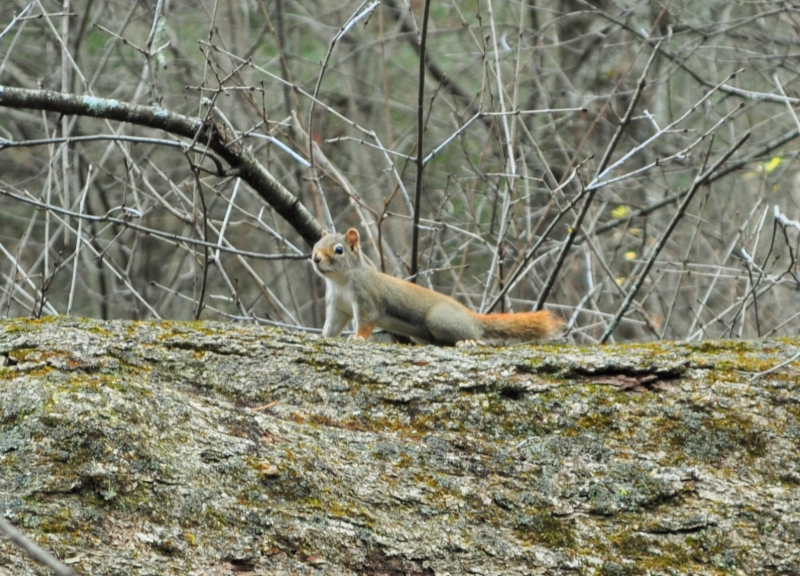 Today, I was walking along the Kip Trail at St. Lawrence University when I stopped to watch a woodpecker. It was a matter of seconds before I heard the chatter of an angry red squirrel. Being a highly territorial animal, he was not pleased that I had wandered into his home and continued chattering until I left.