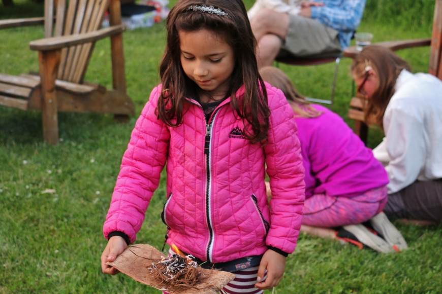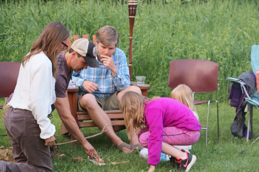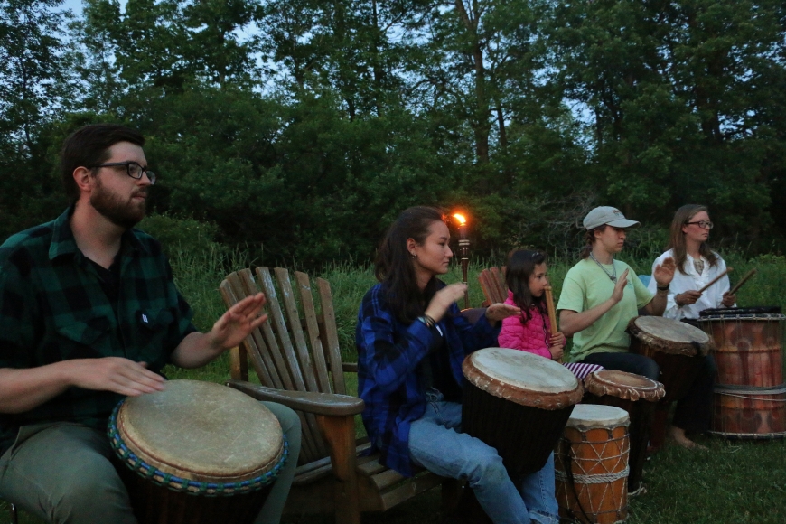 The clouds dissipated just in time for a clear evening, initiating the start of our summer campfire series. Our guest, Len Mackey, taught the group how to use natural materials to build a fire by friction. As the sun set, we enjoyed our man-made campfire with a drumming circle and toasty marshmallows!