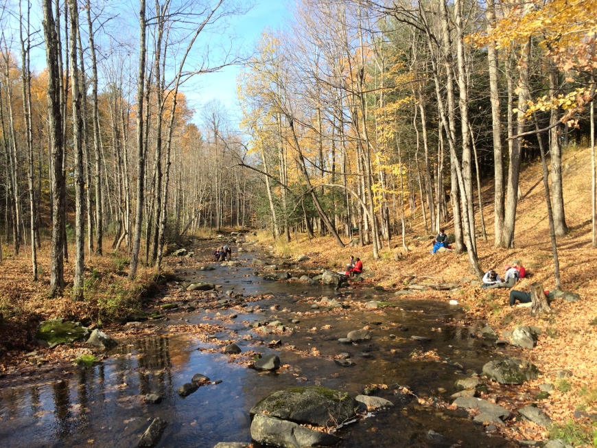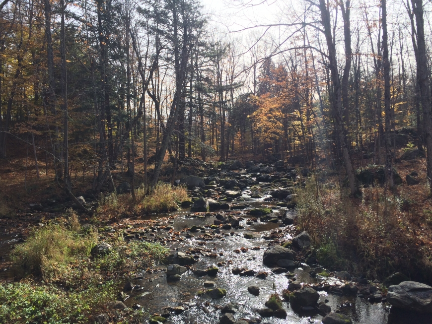 After trekking away from our St Lawrence vans, down into the small valley, our class set down our gear and donned our waders. This is a regular occurrence for our Limnology class, our weekly lab periods are spent investigating the local freshwater ecosystems and today was the final day of the field work portion of our curriculum. It was a beautiful day and the picturesque babbling brook was sparkling in the sunlight. We settled into our various jobs, proving to our professor that we have mastered the techniques required for the course, while still being efficient and having a great time. After a few hours of taking transects, checking water temperatures and depths, it was now time for my favorite part of our field studies. We collect macro-invertebrates like mayflies and caddisflies, take sample populations counts and determine the health of the stream. In our collection this time, we found a mysterious substance on some of the rocks that looked similar to a gelatinous egg casing, except to the touch they weren't jelly-like at all but spiky! We quickly asked our professor what it was that we had encountered and he was excited to tell us that it was a fresh water sponge. Because we were so late in the season, the sponge was preparing itself for winter and making its body smaller. A sponge is a filter feeder, meaning that it filters water through its body and collects anything that flows through it of substance and processes it as food. Not much flows through a small stream in the chilly winters here in the North Country, so a sponge like this has figured out a way to adapt and conserve energy. It shuts down most of its "meat" or spongin, and leaves behind that material that gives the sponge structure, called the spicules. Those spicules are made of a glass like structure, so the spikes that we were feeling were the left over spicules of a wintering sponge.