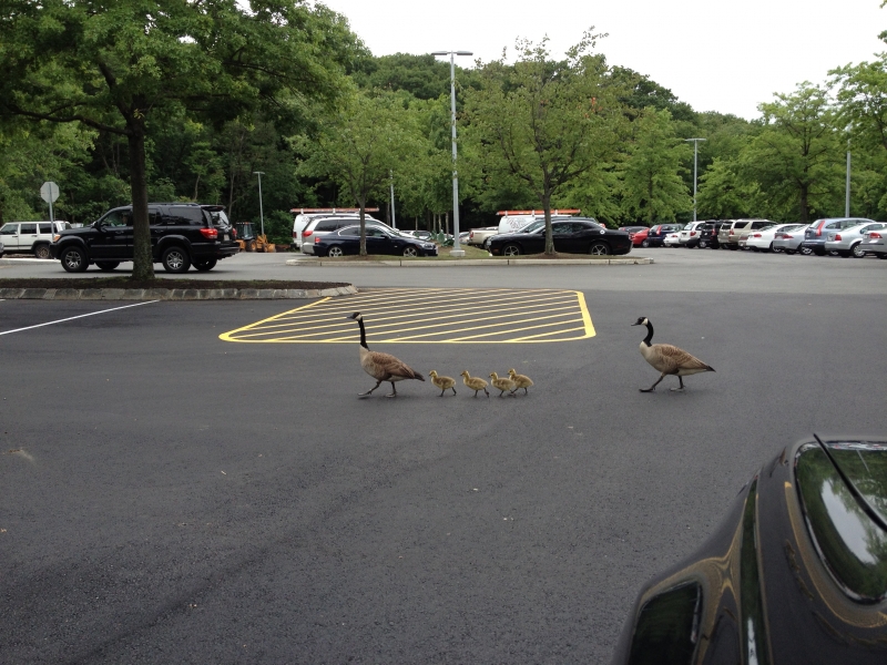 As I was driving up to school at St. Lawrence University we stopped at a gas station in Malone NY to get gas and as we were leaving I saw this family of geese walking across the street by the exit. They were just too cute, I couldn't not take a picture! This was taken in the Fall so these geese are getting ready to fly south.