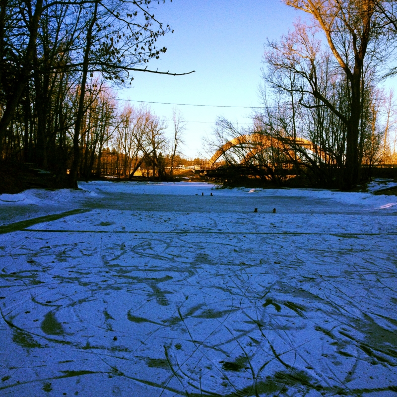 I took this photo while standing on the Grass River in Canton NY. My friends and I went outside to enjoy the nature and for a quick skate on the river. Usually rivers don't freeze very well because running water won't freeze but it had been so cold the past couple weeks that the river was frozen and we skated about a half mile down it because it was such a beautiful day and we wanted to check out the nature.