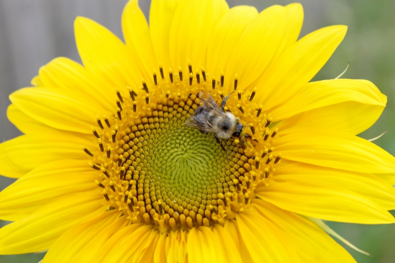 Ran into this bee gathering pollen from a sunflower in me backyard. I tried talking to it but it just shot me a middle finger and flew off. At first I thought it was rude, but later learned it's a sign of respect in his culture.
