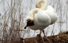 In driving down Route 68 toward Canton, I spotted a good number of Trumpeter Swans on the Grasse River. I pulled over in a safe space and was able to count 15 of them! I captured this photo showing two adults and three immature swans (the ones with the grayish necks and heads). So named for their trumpet-like calls, the Trumpeter Swan is the largest waterfowl native to North America, getting to be six feet in length and with wingspans of 8.5 feet! (Read more about this species at https://ebird.org/species/truswa.) Trumpeter Swans do breed in St. Lawrence County, including in the Upper and Lower Lakes Wildlife Management Area in Canton.
