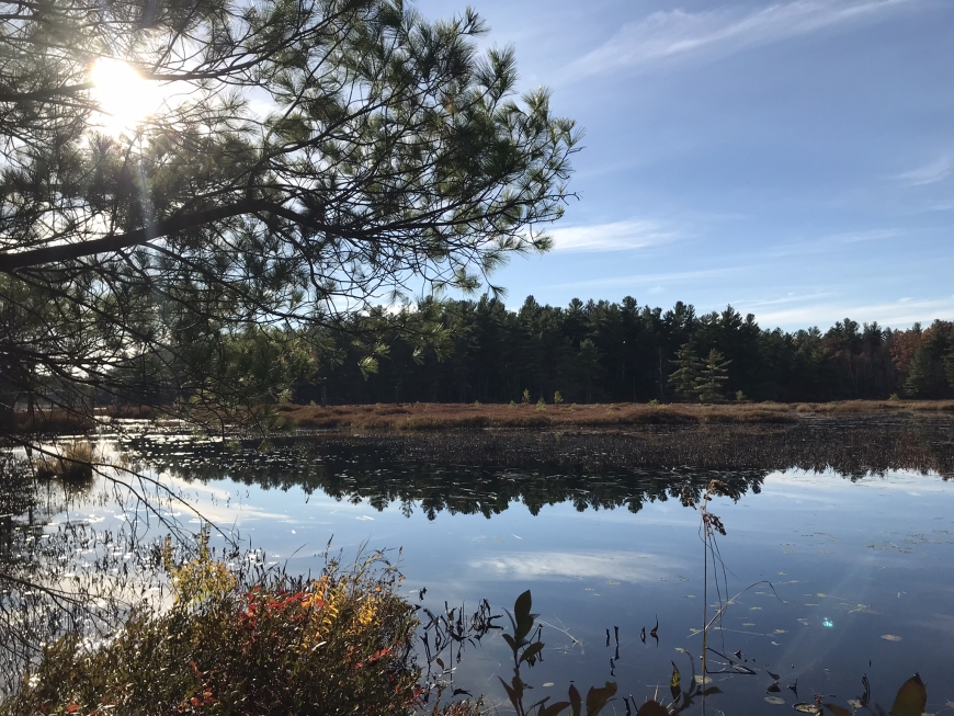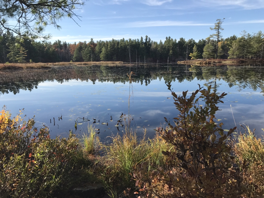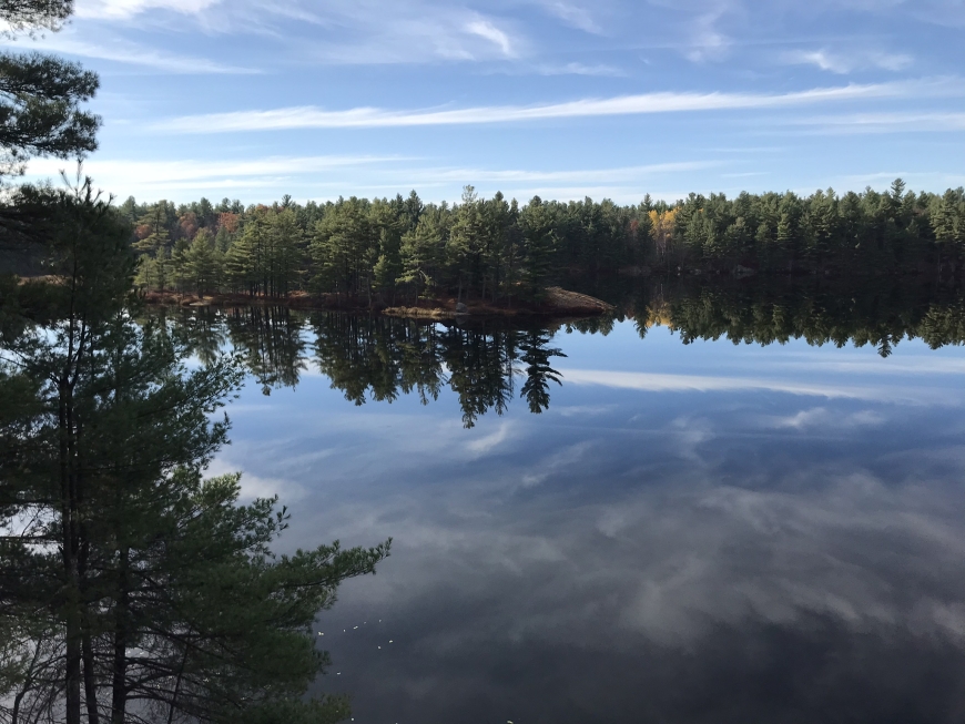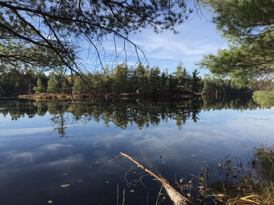 Our first hike to Huckleberry Lake in the Wolf Lake State Forest in St. Lawrence County. An easy 1.7 mile out-and-back led to a ledge over the still-as-a-mirror lake.