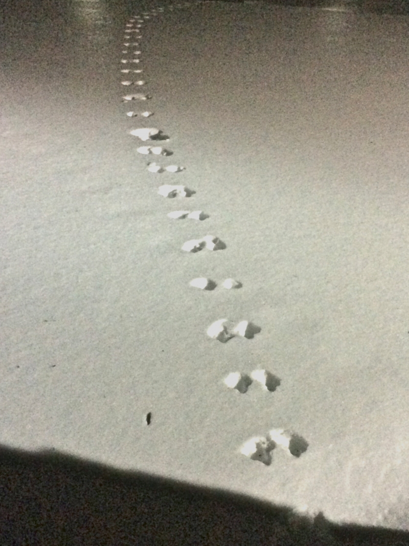 I took this photo after a sleet fall on top of a nice snow layer so the tracks were perfectly preserved. I'm assuming this deer entered the campus of St. Lawrence University to feed upon the plethora of discarded goodies that the students leave behind. It is not uncommon to see deer tracks on campus, but it is uncommon to see them so pronounced. Also, you can tell the deer was under no stress and taking a leisurely stroll due to the incredibly tight gate, which is hard to find in such a densely populated area.