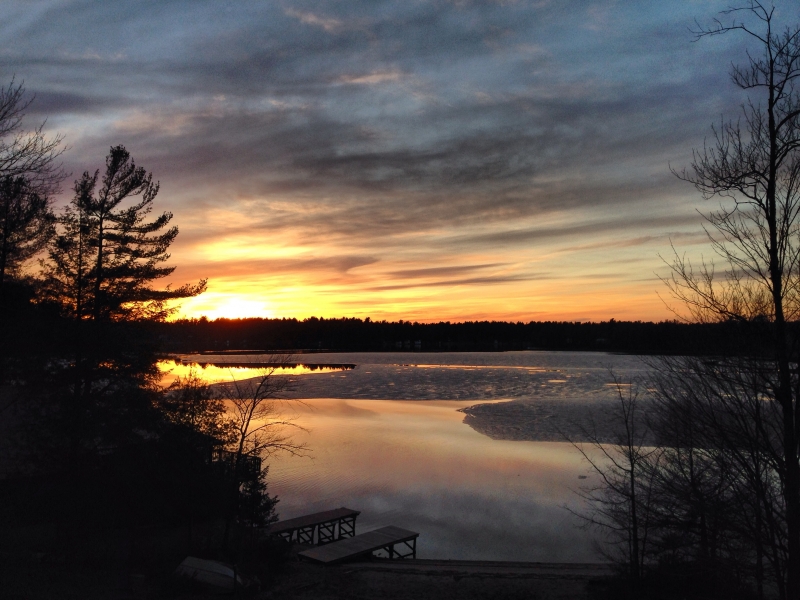 It was a beautiful night seeing a sunset over a partially still-frozen lake. At one point an otter swam by!