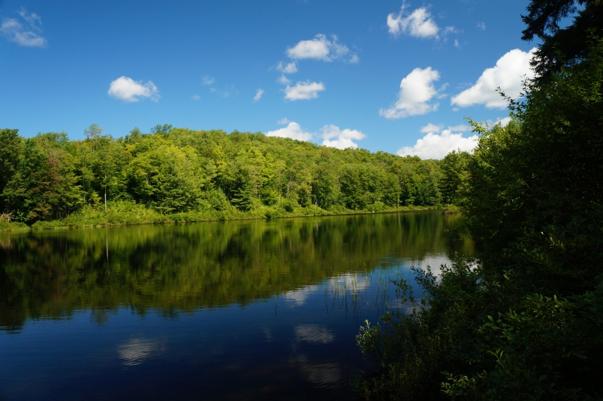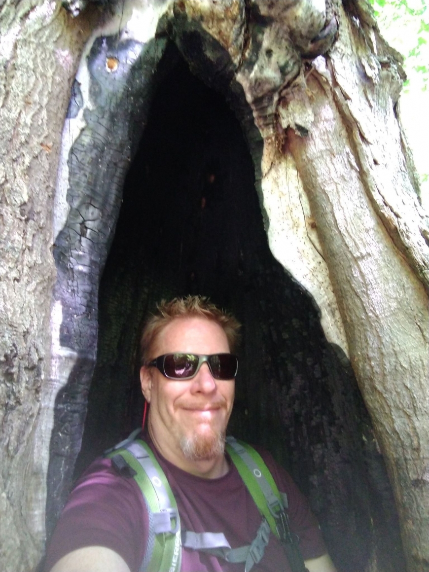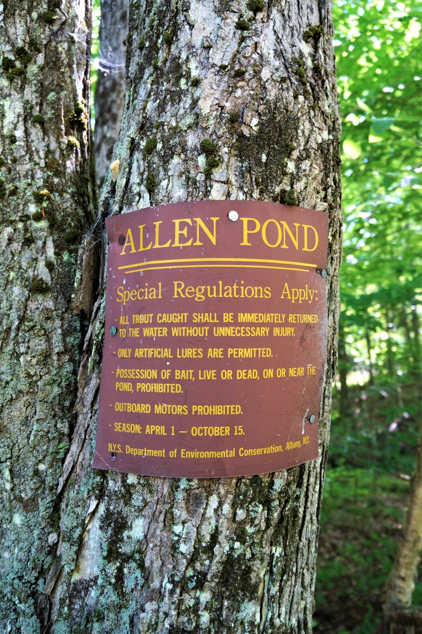 Ther is a half-mile trail from the gate to the pond. I did a bushwhack around the pond and ended up with a two-mile round trip hike. It is easy up until the bushwhacking, then it gets tough. Just before the pond is a maple tree that had been struck by lightning and burned out from the inside, but left the outer wood living. It was plenty big enough for me to fit inside with my pack.