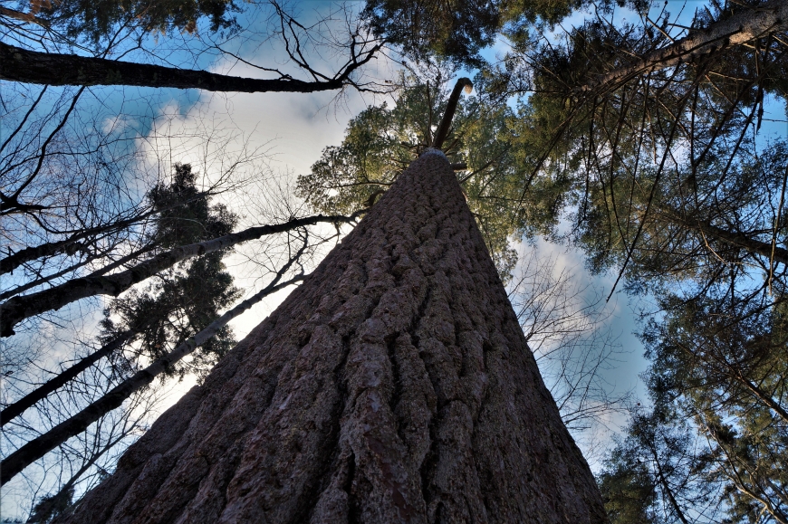 A great sunny January day was perfect to hit the big pine trail in Wanakena on snowshoes. The 140'+ pine is pretty impressive, as are several other trees on this trek. Also found a pitcher plant sticking out of the snow at a near by bog. Read more about it here- https://hikingthetrailtoyesterday.wordpress.com/2018/01/31/big-pine-tra…