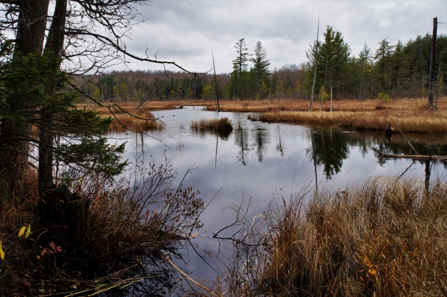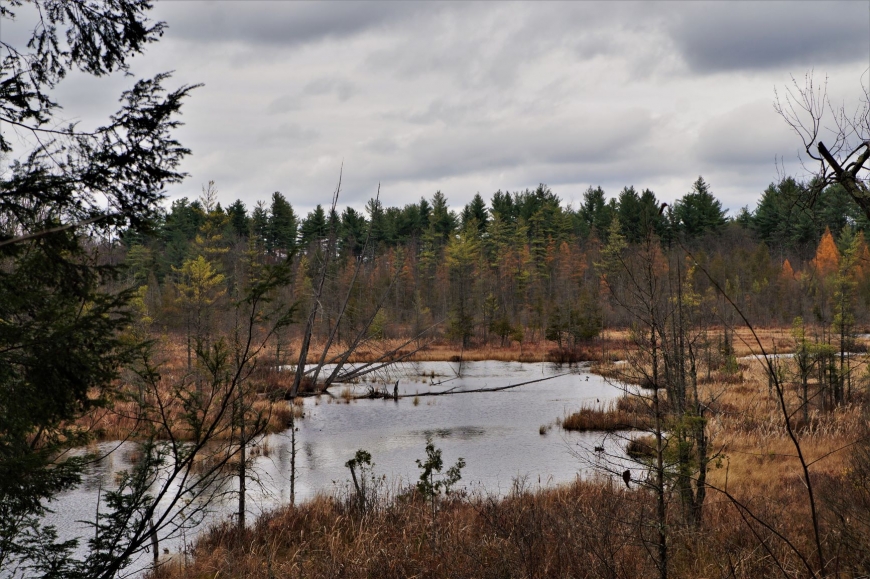 A nice pre-snow hike through some large white pines & hemlocks. Great views of Cold Spring Brook and plenty of beaver activity too.The trail is only a little over a mile and well marked. This would be a nice snowshoe trek as well.