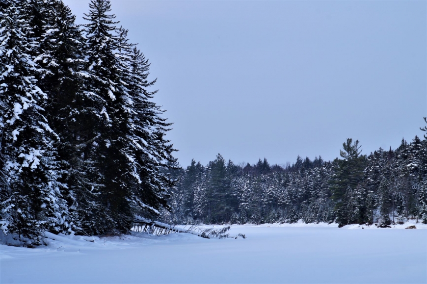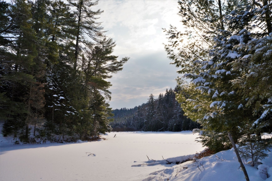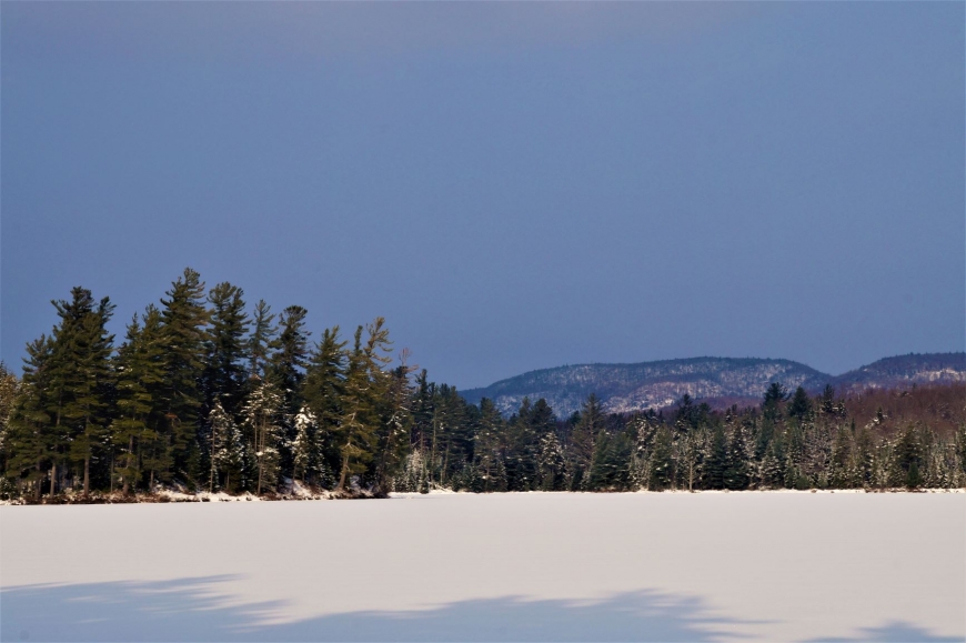This is a nice 4 mile round trip to two remote Adirondack Ponds. This is located in the Horseshoe wild forest on RT 421. It was a nice day for a snowshoe trip, and the terrain is fairly friendly for snowshoes. You can see Mt Arab and the fire tower from Bridge Brook pond.