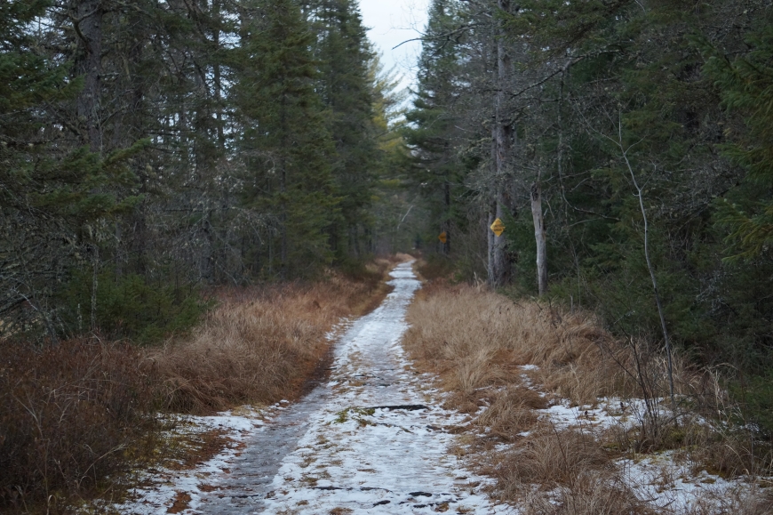 An easy rail-trail hike that always has Gray Jays looking for a snack.