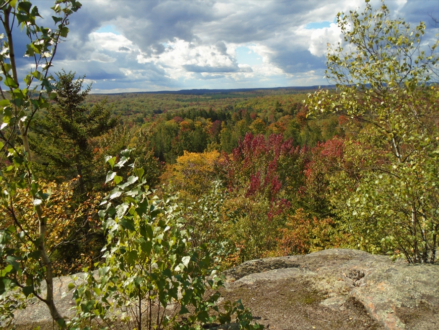 The trail follows the natural contour of the land and is never overly steep. The views from the top are spectacular. The panorama to the west would make this a great place to take in a sunset. Right now, the foliage is really starting to turn. I expect the forecasted cold weather will speed up the process.