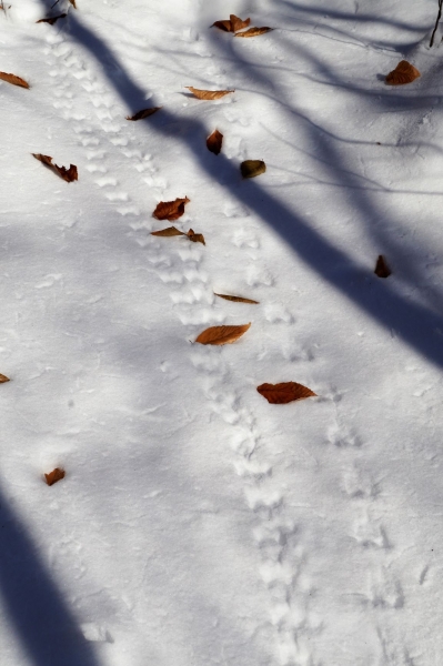 A veterans day hike into Hitchen's park with 2-3 inches of fresh snow showed plenty of tracks along the way. Otter,mink, mice, squirrels, deer and quite a few different birds had left their prints in the trail. It's always interesting to come across these.