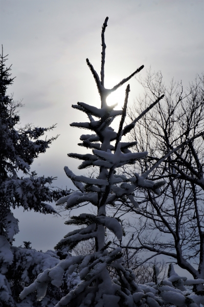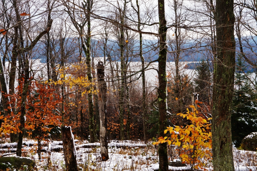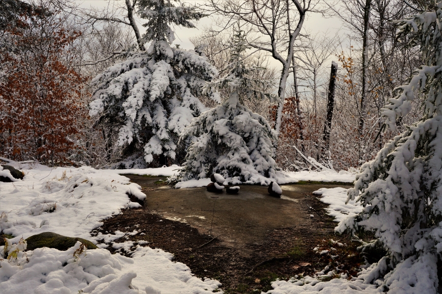 Just a quick hike up Cranberry Lake's Bear Mountain. Temps were in the 30's, and not another soul around. I always enjoy the first snow hike of the season.