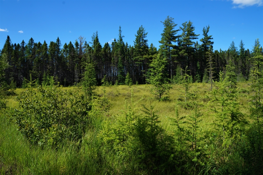 This trek was on some of the old Grasse River Rail Road bed, south of Massawepie Lake. This crosses the Massawepie mire, an amazing tamarack wetland. At over 3000 acres, this is said to be the largest non coastal wetlands in NY. There is an organization that is trying to open up this entire stretch from Cranberry Lake to Conifer, you can check out what they are doing at http://grasseriverrrtrail.org/ .