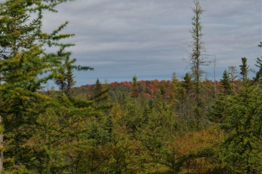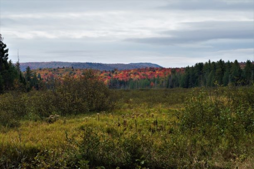 This hike was along the long abandoned Grasse River RR bed. This section starts from below the Massawepie area and goes through to RT3 near the Grasse river rest area. It's a little over 8 miles. Although the trail is wide and obvious, there are many branches, so you'll want to be proficient with map and compass (or GPS). There is a movement to open this from Conifer to Cranberry lake.