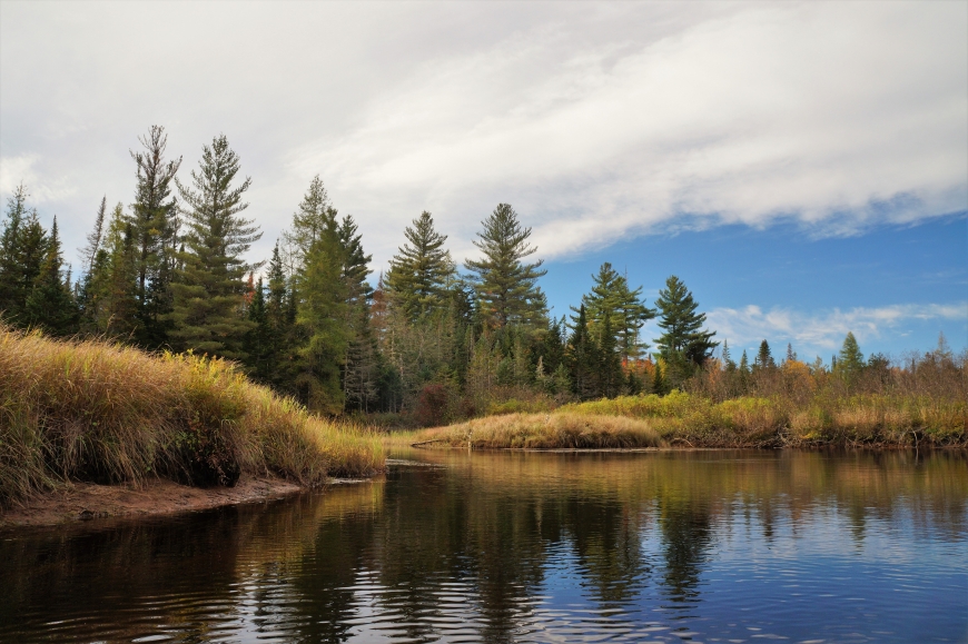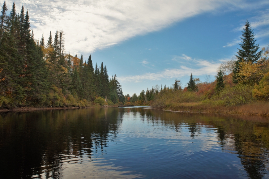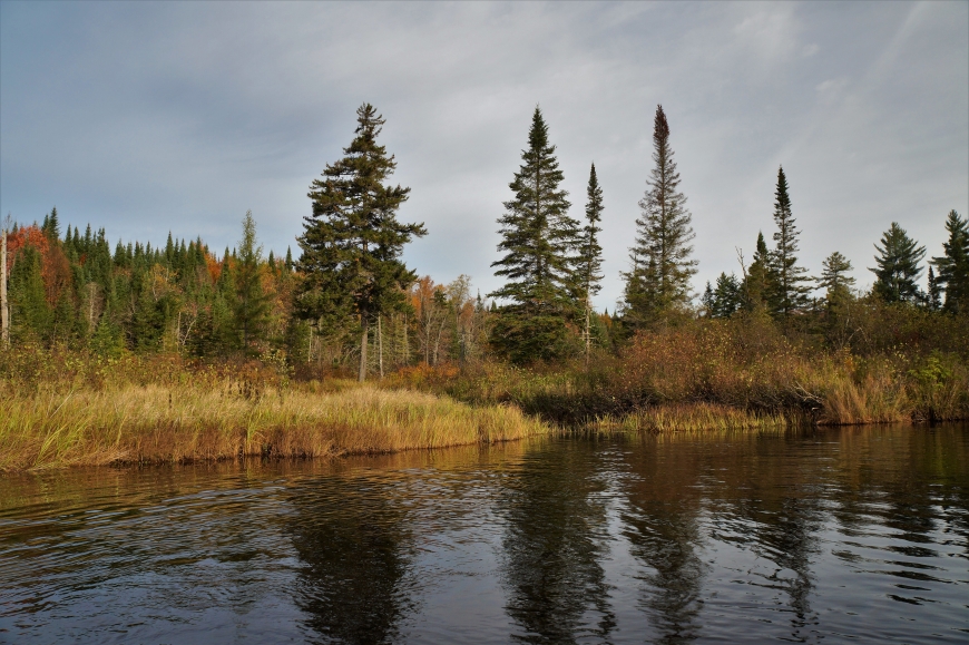 I spent Columbus Day with a solo kayak trip up the Oswegatchie River (Fine NY) to High Rock. The leaves are well past peak, and the water was REALLY low. I didn't have to carry over anything, but I ran aground several times. The temperature was great considering it's October