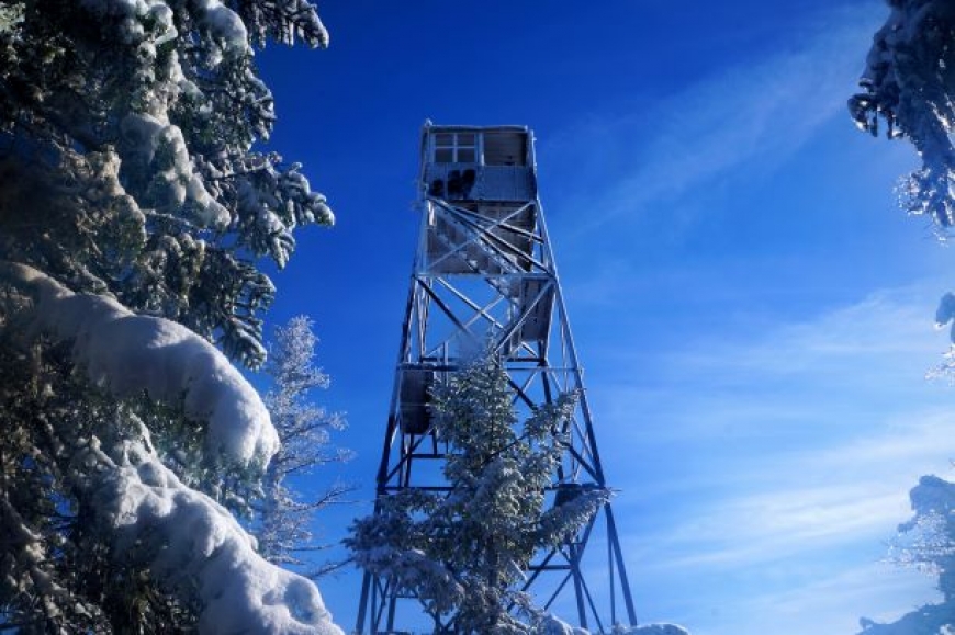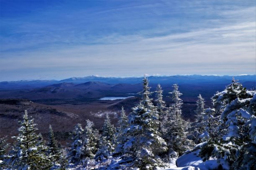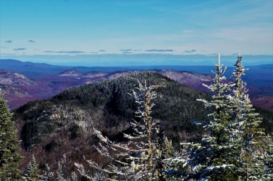 Finally got a chance to hike up to the long abandoned fire tower on Loon Lake Mt. The upper reaches had 2 or 3 inches of fresh snow, and there was ice as well. The last mile is pretty brutal. Around 1700' of ascent, and 6.2 miles round trip. The views were incredible- and we lucked out weather wise, chilly but clear. This is in Franklin county near Vermontville. It's an awesome trek, but not for everyone. The last mile is pretty difficult, and at nearly 3300' in altitude it has much different conditions than lower peaks.