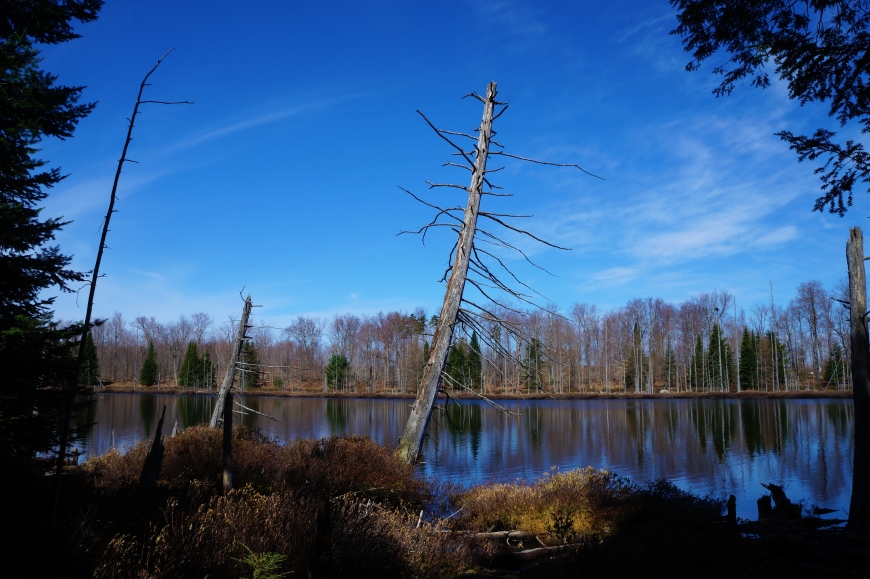 The crisp, bright morning was perfect for a hike along the Lost Pond nature trail. This is a wonderfully laid out trail that loops around Lost Pond and treks through several different forest systems. I just missed the state stocking trout into Cranberry Lake by a half hour, but there was still plenty of fish hanging around the boat launch. A very nice and easy short hike.