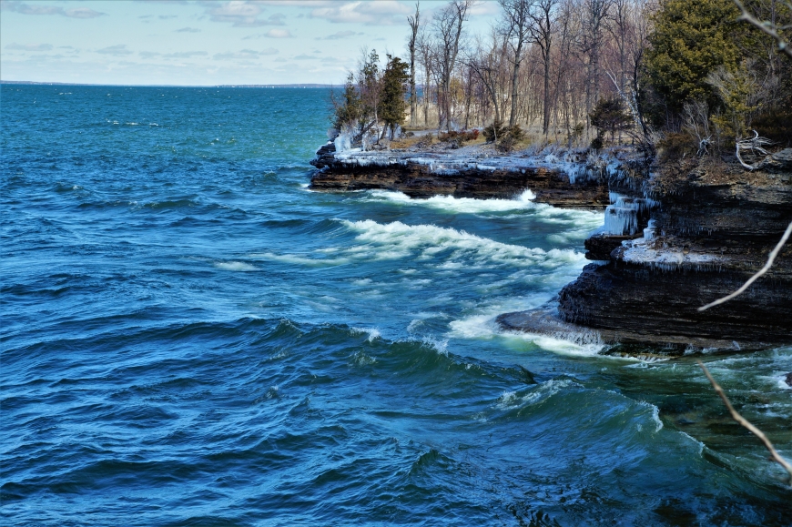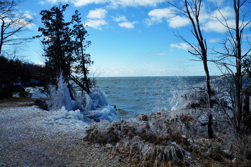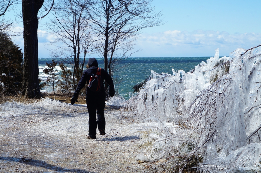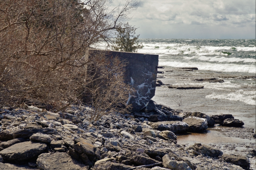 An incredible day on the shores of lake Ontario. It was a bright and beautiful day, around 35 degrees, but the 25 MPH winds off of the lake were frigid.There are quite a few trails there, we hiked the Snakefoot and Dancing Gypsy trails.This was originally an Army training base, "Stony Point Rifle Range", and you can still find remnants of pillboxs, spotter station boxes and the firing wall. Later it was sold to the Wehle family (of the Genesee beer company fame). The place was used as a summer home, and they raised champion German pointers here. Today it is a state park, and it's well worth the visit. We hiked about 8 miles, and there were more. The lake was still running pretty heavy after the earlier storm. This combined with the cold weather made for some amazing ice on the cliffs 40 -50 feet above the lake. Great day at a great destination.