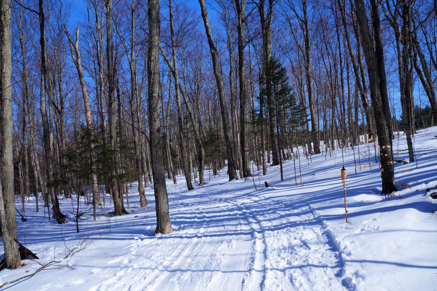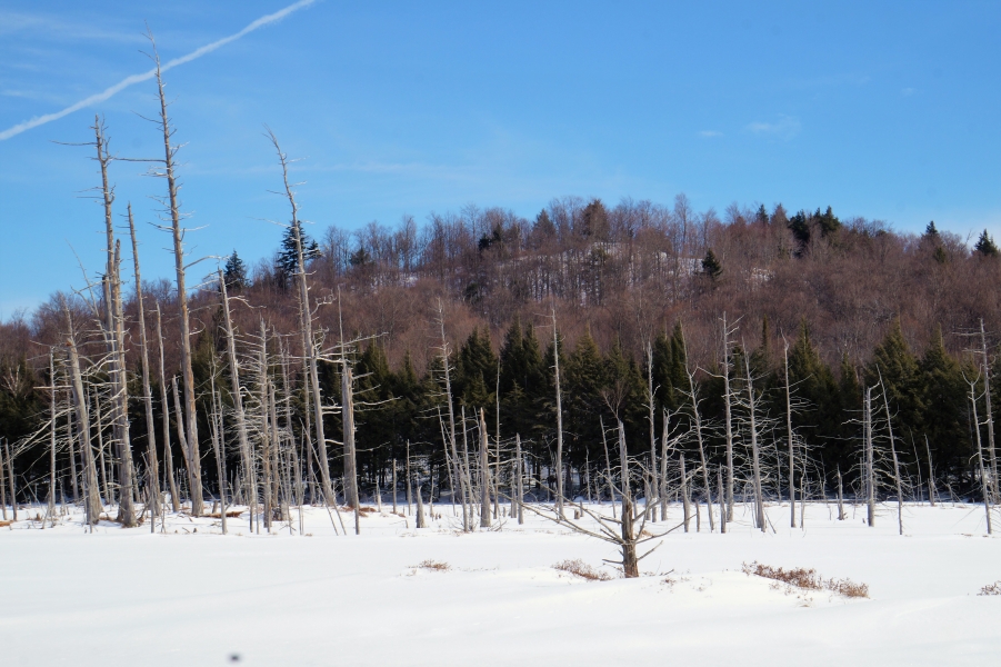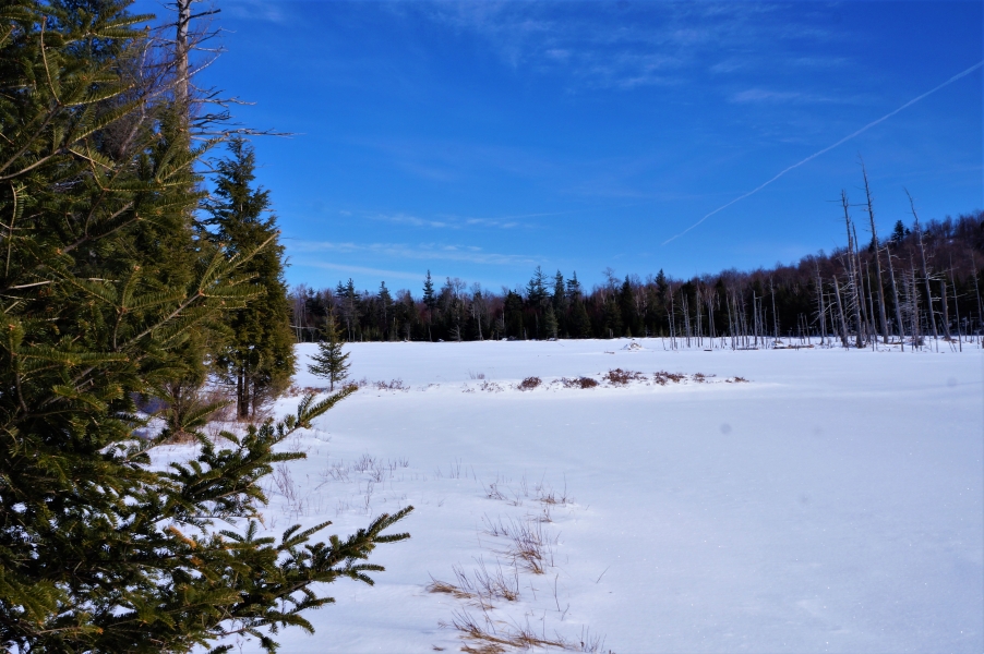 A sunny Sunday made for a fine day of snowshoeing at the James C. Frenette Sr. recreational trails, in Tupper lake. This is on the north side of Mt Morris, below the Big Tupper ski slopes. The original NYS fire tower is visible from Cranberry pond. Today it serves as an antennae tower. The groomed trails are a nice change of pace. It's well worth your time to give these trails a visit.