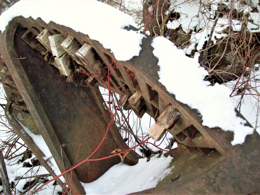This is the part of town referred to as the "island" in Edwards. It was the first part to be settled around 1812, and was on the Russell turnpike .The Russell turnpike was built for use by the military to move troops and supplies between Sackets Harbor and Plattsburgh. The Oswegatchie river splits and made the small island, with a gristmill on the side branch, and a sawmill on the main flow, both powered by water. The gristmill was last used as a private residence until sometime in the early 80s, when it burned. There is still many pieces of the mills iron gears and such visible today, along with a massive stone wall. The pond below was used as a mill pond, holding logs that were transported by floating them down the river. They would be kept from drying out until they were ready to be sawed at the sawmill. The name "Tannery falls", came from the leather tannery a short distance from the gristmill. Tanning hides was an essential industry for a community in those days, with leather being used in many applications, such as harnesses for horses & wagons, shoes, clothing and belting to run the mill's shafts. Hemlock bark was used extensively for this, because of it's high tannin content. The pond has always been a favorite fishing spot, even in the winter. There are only few buildings, and two homes left on the island today. Not much to see anymore, but these few artifacts still stand as a reminder of days past. For more information on the area, see the link below............................................... http://www.edwardshistory.org/index.htm