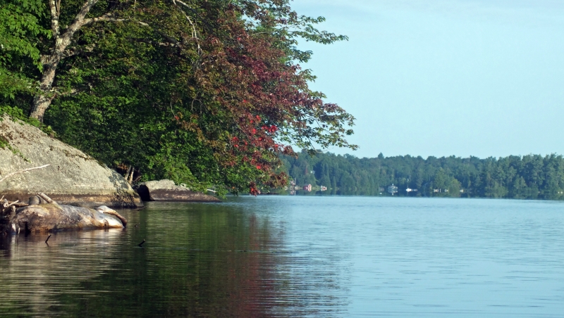 8-8-14 "What's Wrong With This Picture?" - As I was paddling my kayak at warp speed yesterday morning...concentrating on my arm movements...stretching that left achilles tendon on the foot peg....my breathing pattern....why the "needs servicing" light came on in my truck yesterday...what fruit I would use in my Nutribullet for breakfast....things I need to get done before I head to San Fran....why Tiger Woods even bothers...where are the loons this morning....etc, I looked up and was startled. Late winter....now this! My thoughts switched to firewood and Florida....not yet!!