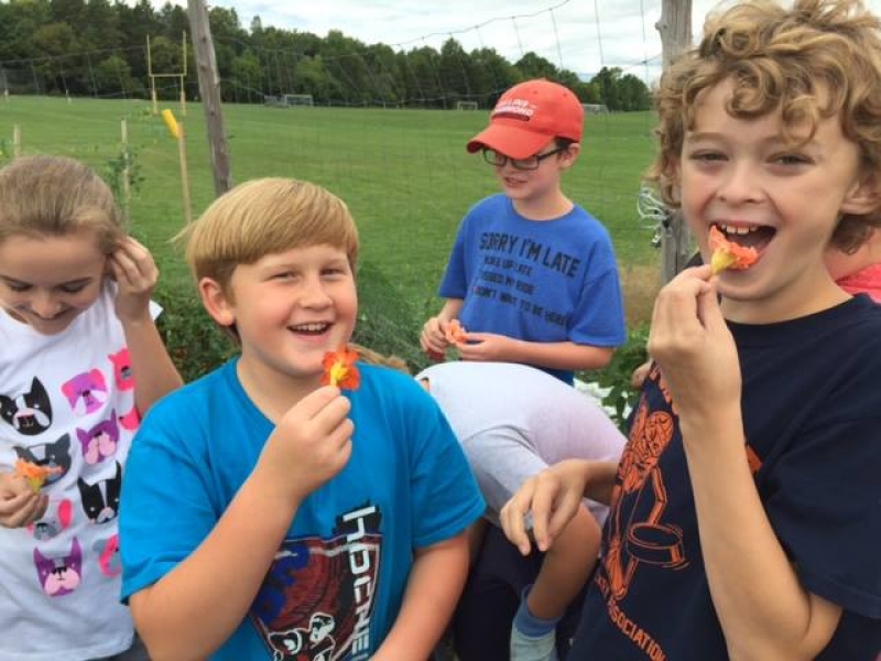 This year's Green Team members have been working hard at harvesting lots of great fruits and veggies from the school garden. This summer had the perfect conditions for us to have lots of success with our tomato plants (especially our cherry tomatoes), carrots, garlic, herbs, and peppers. Here are some Green Team members tasting their nasturtiums, which have a peppery taste. We look forward to posting more encounters with plants and wildlife, and sharing our members' experiences!