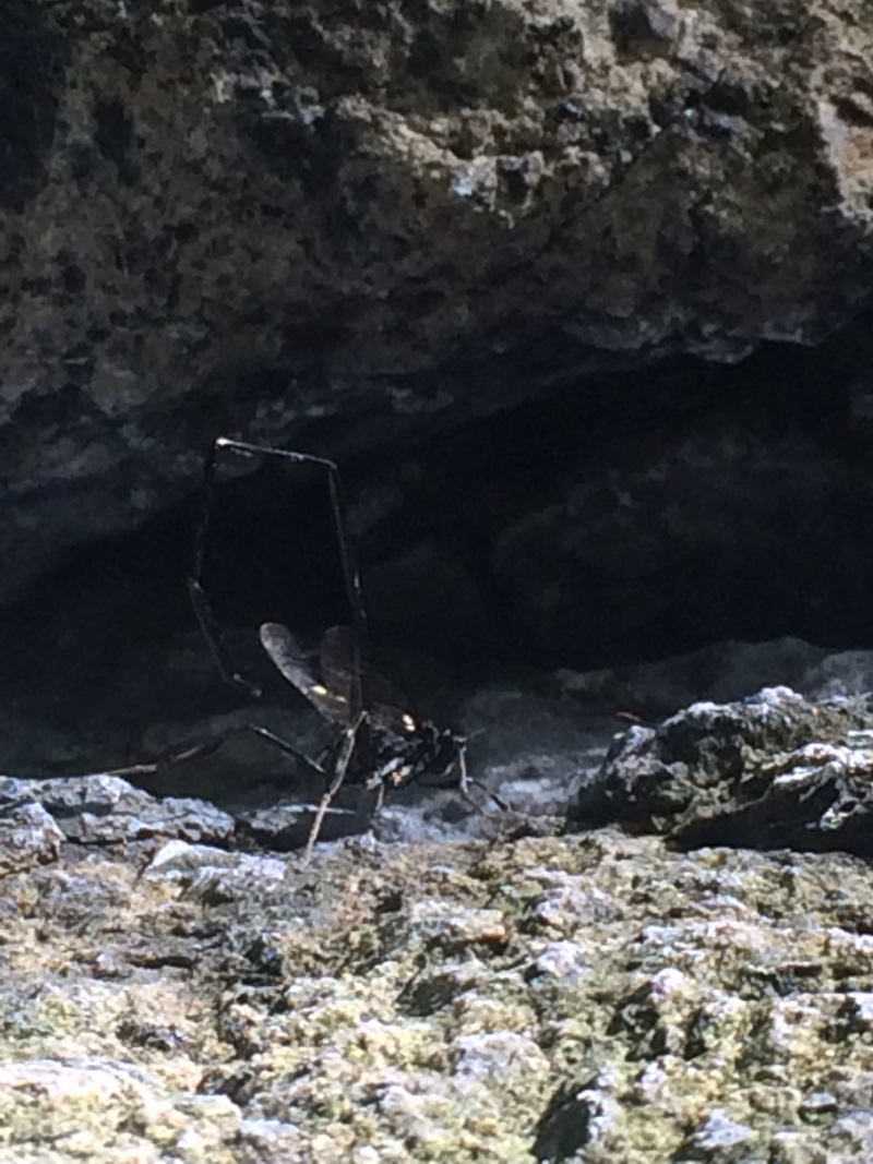 We were surprised to find this alien looking creature on a rock in the woods, curling and uncurling its long "tail". Later identified it as an American Pelecinid.