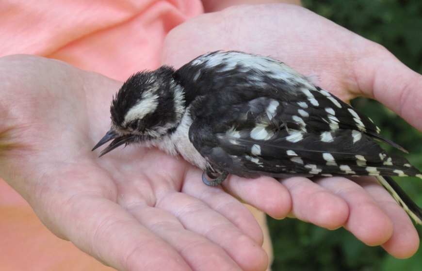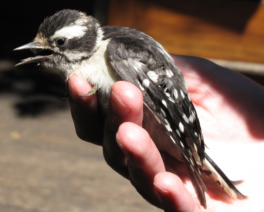 Yesterday, our cat caught a baby woodpecker. We took it away from her as fast as possible, but sadly, it died after a few minutes. In the North Country, we see downy and hairy woodpeckers. When the bird is this young, it is hard to tell the difference between them.