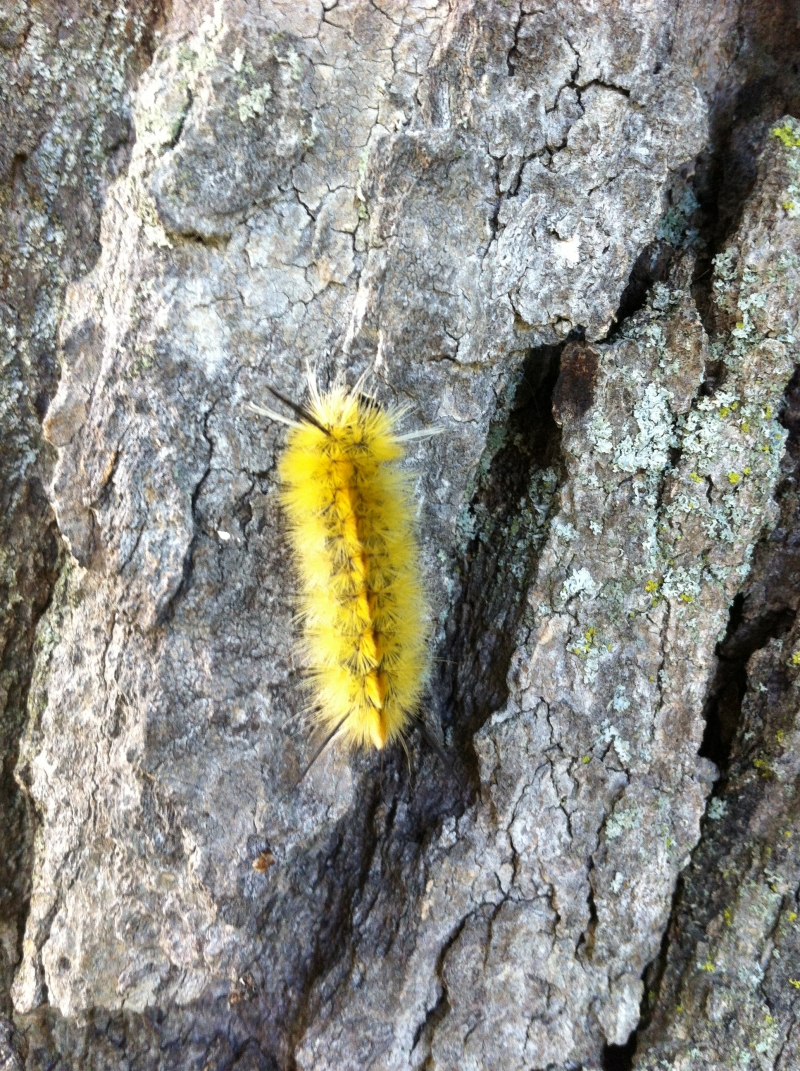 Found this caterpillar on a tree at the Almanzo Wilder Farm. They range in color from yellow to dark grey.